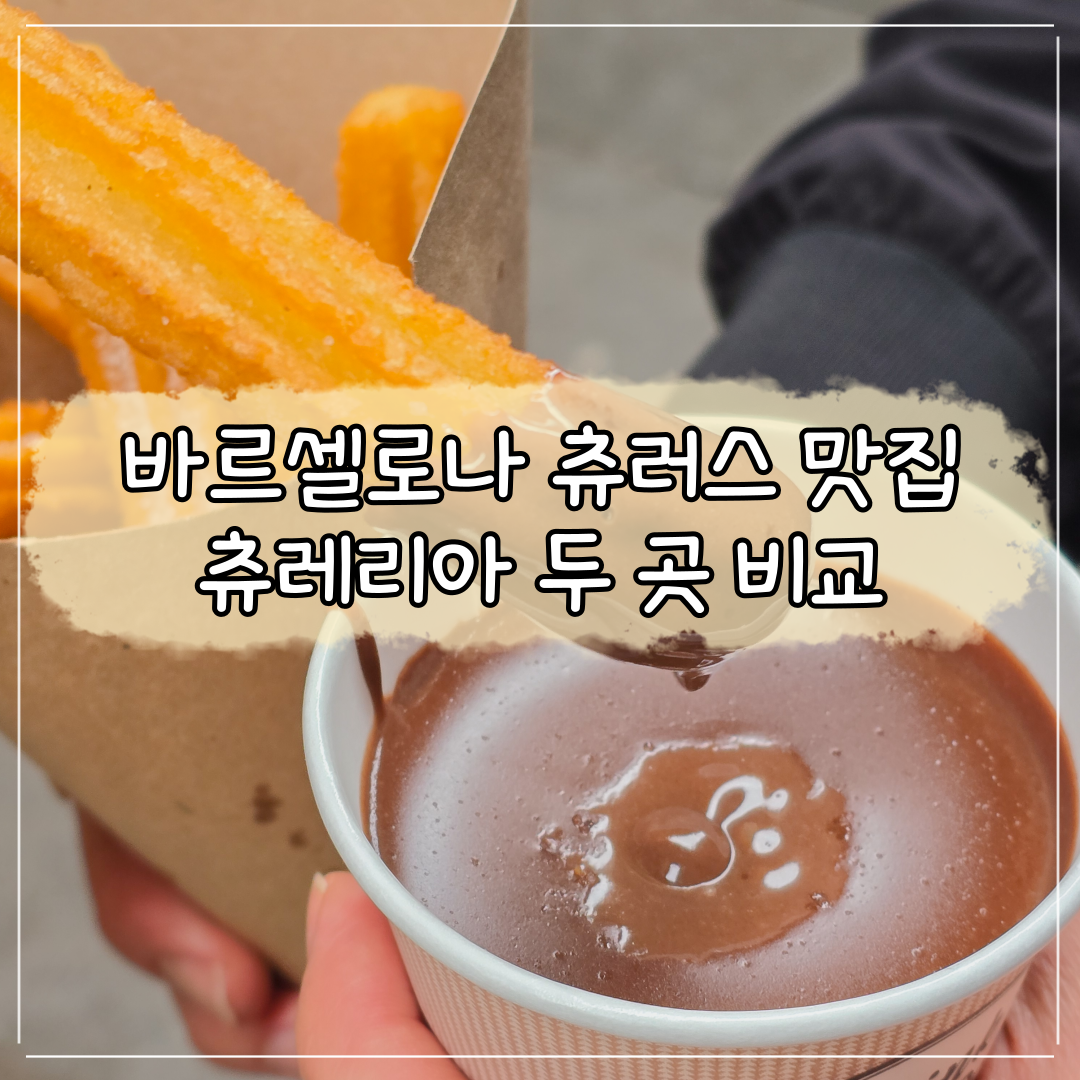 빠에야, 타파스 등 음식이 유명한 바르셀로나! 그중에서도 츄러스는 꼭 드셔보셔야 해요.한국에서 파는 츄러스와는 다르게 진한 핫초코에 찍어 먹는 츄러스는 스페인에서만 먹어볼 수 있어요. 츄러스를 전문으로 파는 곳을 츄레리아라고 하는데 츄레리아 중에 유명한 곳 두 곳을 직접 가보고가격과 맛을 비교한 후기를 작성해볼게요.1. 한국인들에게 제일 유명한 바르셀로나 츄러스 맛집, 츄레리아 산 로만 추레리아 마누엘 산 로만 Xurreria Manuel San Román - 주소: Baixos, Carrer dels Banys Nous, 8, 08002 Barcelona, 스페인 - 가는 방법: 바르셀로나 대성당에서 도보 약 5분 거리 - 구글 리뷰: 4.5 / 4,680개 - 영업시간: 오전 9:00 ~ 오후 9:0..